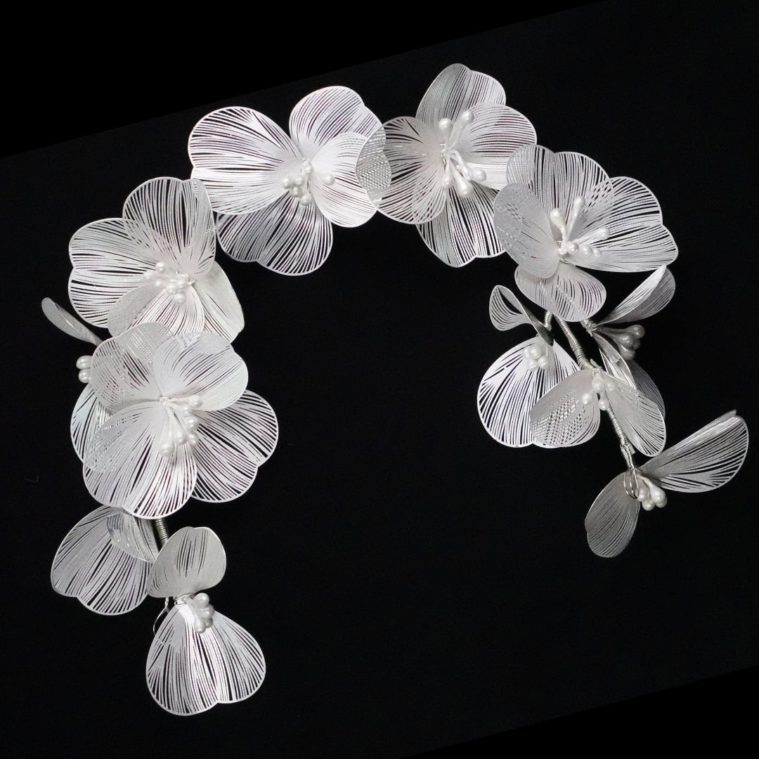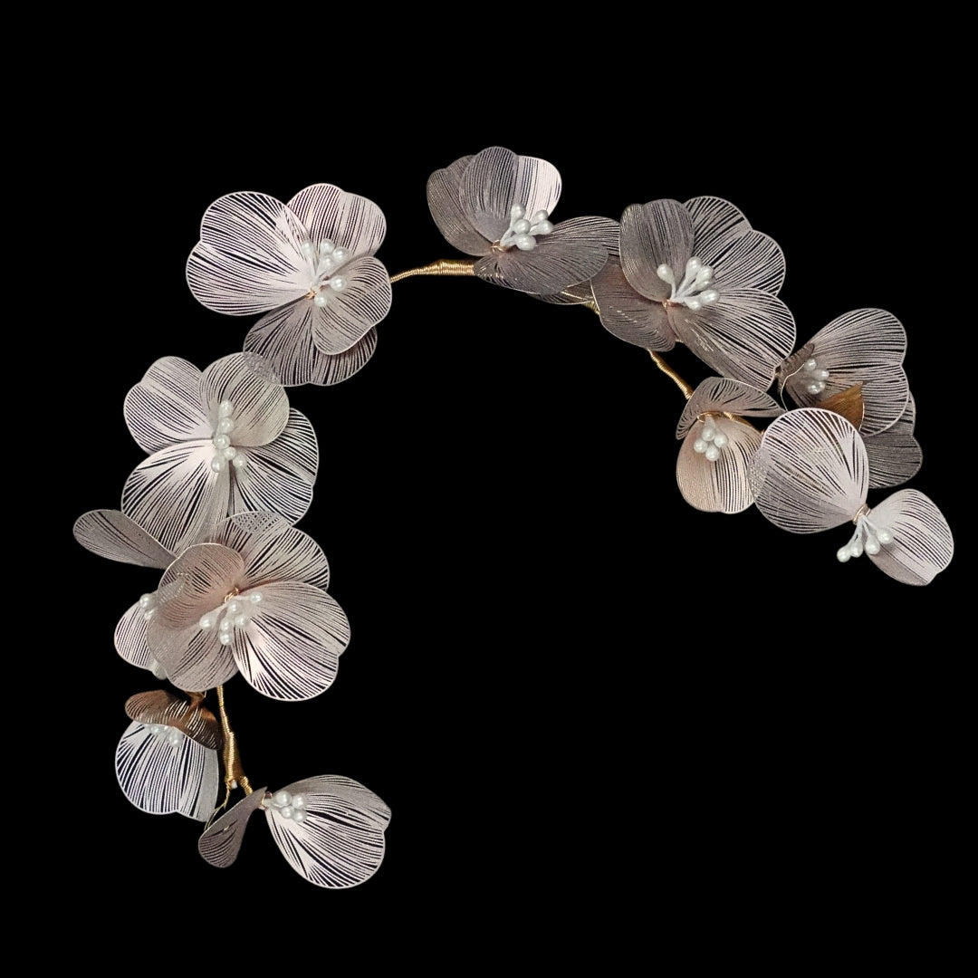 This Korean Flower Headband is carefully crafted for a delicate look showcasing the fine craftsmanship and attention to detail of the Korean culture.