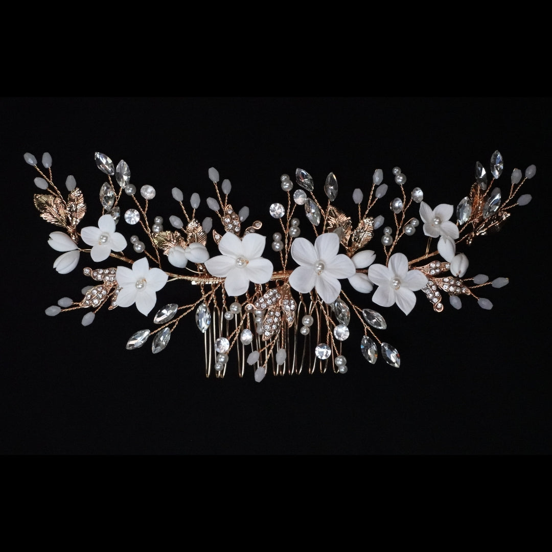 Add elegance to your hairstyle with our intricate floral hair comb. Perfect for achieving a sophisticated look.