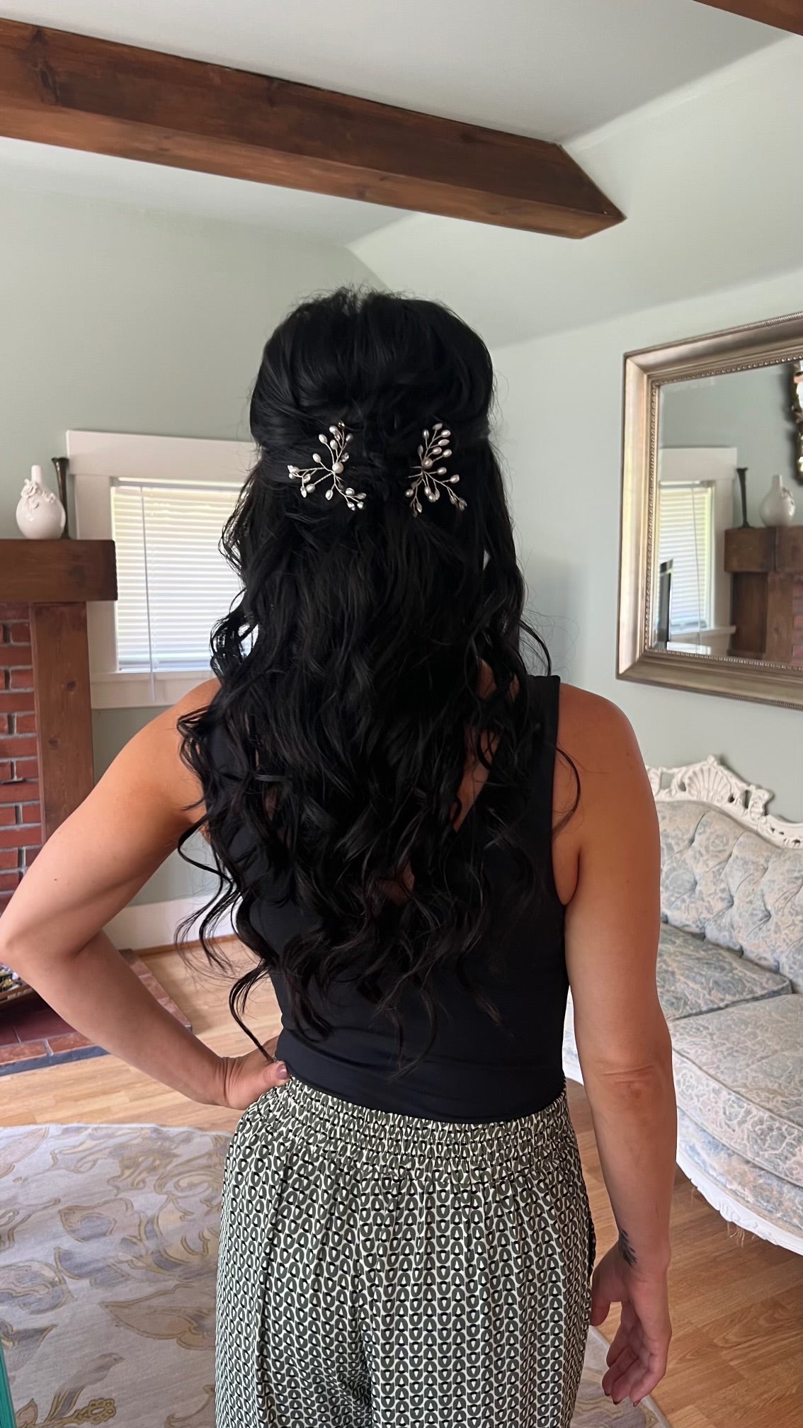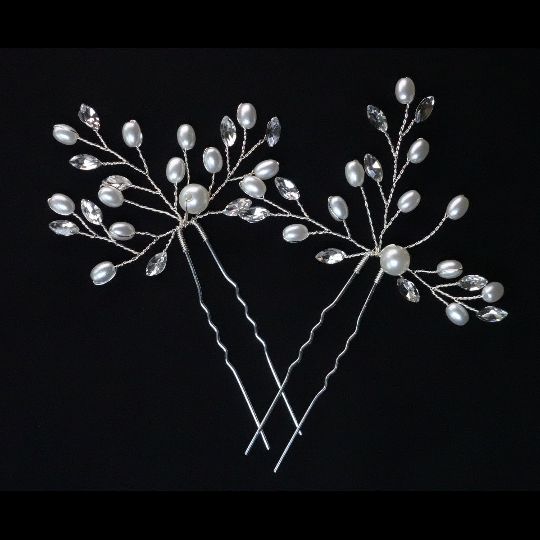 Elegant Diamond and Pearl Hair Pin Duo in Silver